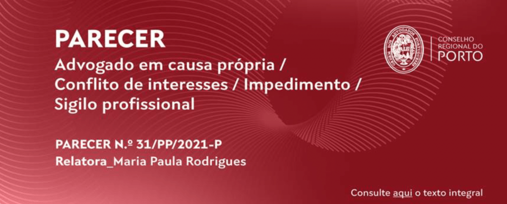 | Parecer n.º 31/PP/2021-PRelatora: Maria Paula RodriguesConclusões: I. A possibilidade de os Advogados poderem advogar em causa própria deriva da interpretação articulada do artigo 66º do EOA, conjugado com o artigo 1º da Lei 49/2004 de 29 de Agosto (Lei dos actos Próprios dos Advogadas e Solicitadores). II. Não existe qualquer impedimento em que um Advogado sócio de uma empresa seja mandatário dessa empresa, pois se ao próprio Advogado é facultada a possibilidade de se representar a si próprio em juízo, por maioria de razão nada há que (legalmente) o impeça de representar uma sociedade da qual é sócio, nem mesmo as limitações que decorrem do seu dever de guardar segredo profissional já que, para tal, há mecanismos que asseguram o bom atuar do Advogado, como é o caso do levantamento do sigilo. III. E, por maioria de razão, também é admissível o patrocínio do cônjuge do Advogado assim como o seu próprio. IV. O Advogado que se apresenta em Tribunal como mandatário e parte num incidente de qualificação de insolvência por força do disposto no n.º 1 do artigo 83.º e no n.º 2 do artigo 81.º do EOA, deve considerar-se impedido de patrocinar os ali requeridos, ele mesmo incluído a menos que logre obter dispensa de guardar sigilo profissional (nos termos do regulamento de dispensa de segredo profissional). Consulte o texto integral aqui. |