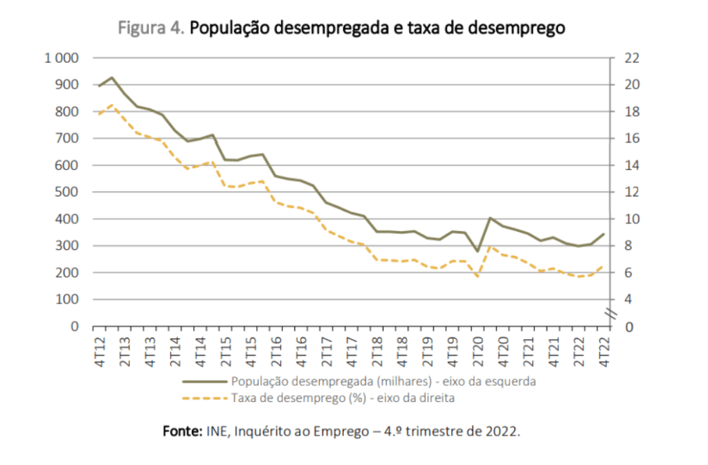 Em termos trimestrais, porém, a taxa de desemprego subiu 0,2% num ano, no quarto trimestre de 2022 face ao período homólogo.